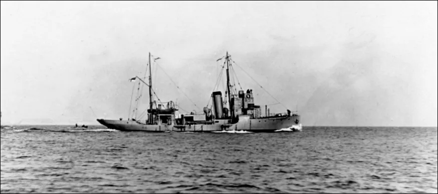 Cachalot, a World War I escort based on a whale catcher. She was used in numerous trials of early asdic development.