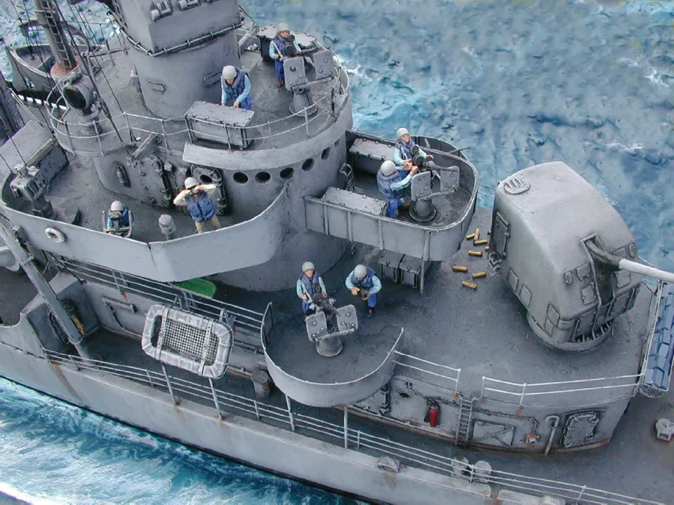 An informative reference for modelers with a brief history of the U.S. Navy ship, its design aspects, and a survey of model kits and reference materials.