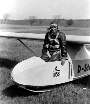 Organized glider flying was a prime outlet for aviationminded German youth between the wars. This is Gerhard Herzog in a Grunau Baby, c. 1933â4. Herzog later served in the Condor Legion in Spain and became the first war casualty of JG 26, going into captivity on May 11, 1940. (Herzog)