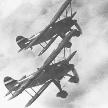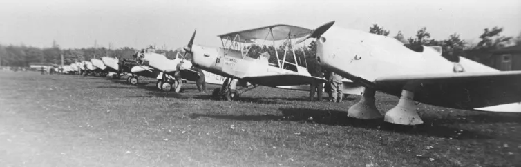 The âWeimar Air Force,â photographed at Breslau on October 28, 1934. The nearest airplane is a Klemm 25; the second is a Heinkel 72 Kadett. (Herzog)