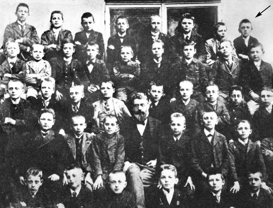 At school. ‘The small ringleader’ – this is how Hitler referred to himself in his book when he wrote about his adolescence. The small Adolf Hitler (in the centre of the top row) with his fellow classmates.