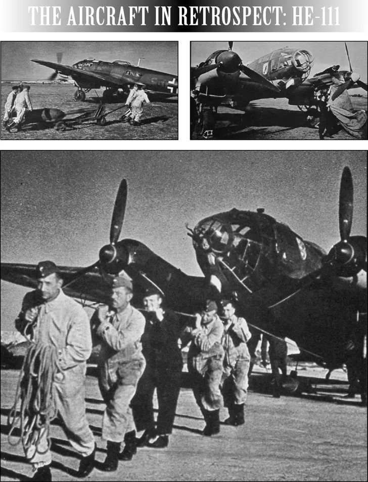 The He-111 is perhaps the most famous symbol of the German bomber force (Kampfwaffe) due its distinctive leaf like wing shape and âGreenhouseâ nose, which gave excellent all round observation. The Heinkel 111 was the only medium/heavy Luftwaffe bomber during the early stages of the Second World War. lt proved reliable and efficient in all the early campaigns suffering only modest losses until the Battle of Britain, when its weak defensive armament exposed its vulnerability. As a combat aircraft the He-111 proved capable of sustaining heavy damage and remaining airborne. As the war progressed the He-111 was used in an ever increasing variety of roles on every front throughout the war and in every conceivable role. The He-111 saw service as a strategic bomber during the Battles for Poland, Norway, Holland and France. lt was heavily involved in the Battle of Britain, but also saw service as a torpedo bomber in the Battle of the Atlantic, a medium bomber and a transport aircraft on the Western Front, the Eastern Front and the North African Fronts. Later in the war, with the German bomber force redundant, the He-111 was converted to use as a transport aircraft and downgraded to a logistics role. Despite being constantly upgraded it became obsolete during the latter part of the war, but the failure of the Luftwaffe to design and produce a worthy successor meant the He-111 continued to be produced until 1944. Some 5600 of all variants were produced.