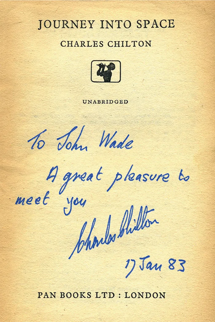 The title page of Journey Into Space, autographed many years ago by Charles Chilton for the author of the book you are now reading.