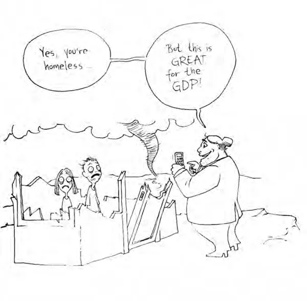 Many people forget that GDP is a measure of the level of activity in an economy, not the level of happiness or the standard of living. GDP certainly increases when more consumer goods and services are produced, but it also increases when prisons are built, when warships are launched and guns are fired, when road accident victims are treated, and when dikes are rebuilt after flood damage.