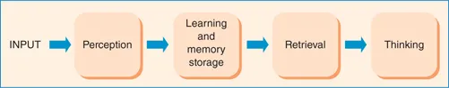 The main stages of cognitive processing are shown in Figure 1.1, arranged in the sequential order in which they would typically be applied to a new piece of incoming sensory input.