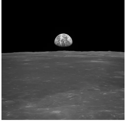 The earth rises over the moon and we see