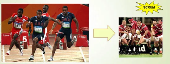 Scrum refers to a holistic or "rugby" approach—where teams go the distance as a unit, passing the ball back and forth—as opposed to the traditional sequential or "relay race" approach for managing new product development.