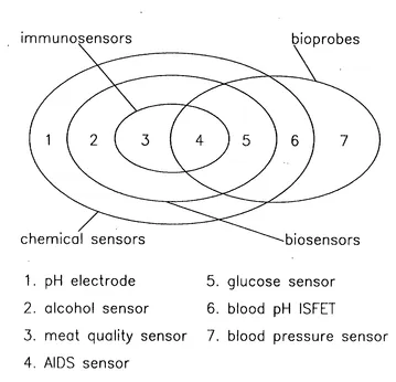 Biosensors are a subdivision of chemical sensors. Biosensors that measure immunological parameters are called immunosensors. It is important to notice that a sensor can be a biosensor as well as a bioprobe. An AIDS sensor is for example an immunosensor that is based on biological material, so it is a biosensor. Since it monitors the immunological system—a vital function—it is also a bioprobe. The same can be said about glucose sensors; however, if an enzymatic glucose sensor is used for monitoring an enzymatic reaction in a fermentation tank, then the glucose sensor is still a biosensor but not a bioprobe. A good example of an immunosensor that is not a bioprobe is a meat quality sensor. A well known example of a chemical sensor that is not a biosensor is the classical pH glass electrode.