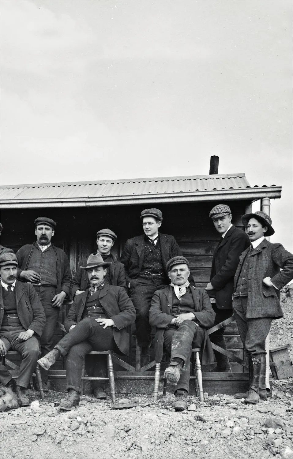 Men from Bonmahon Copper Mines in Waterford showing woollen textiles and caps in everyday menswear at the start of the twentieth century.