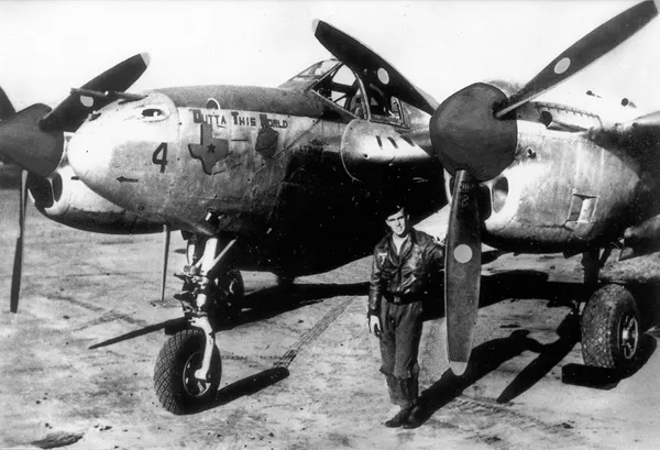There were no P–38 instructors at this advanced combat staging area, so we were given tech orders for the plane and told to study them until we were ready to fly. My good friend Bill Hamilton was also transferring to fighters and joined with me as we took the tech manuals and studied them all morning. By one o’clock we felt ready to give it a try, so we drove back to the strip and declared to the major that we were ready to go. He pointed to two beautiful P–38s parked in front of Operations and said, “Take ’em up, and from here on you are on your own!” That was our formal training for combat flying in the P–38.
