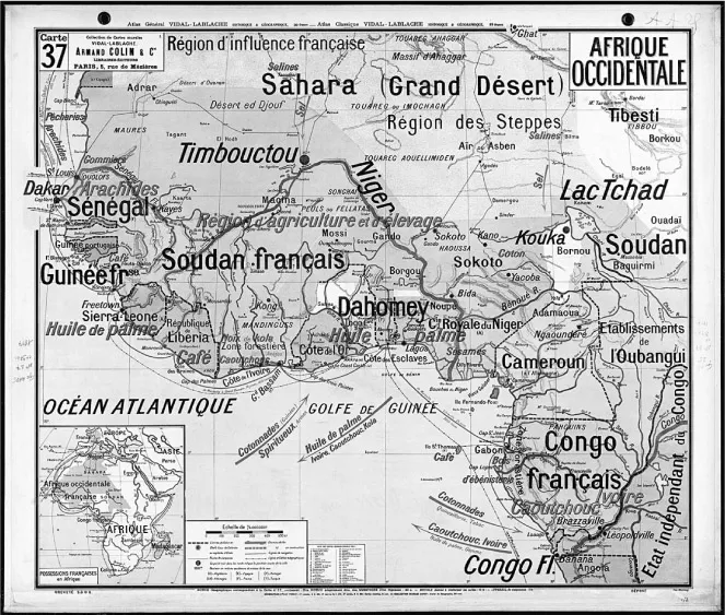 FIGURE 2.01. Map of Afrique Occidentale (West Africa) featuring natural resources (1897). Credit: BibliothĂšque Nationale de France.