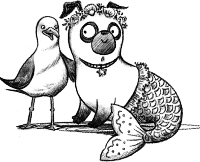 Peggy wants to give Chloe a truly mer-mazing summer vacation in this fourth story in the illustrated middle grade series about the adorable and silly Peggy the pug! Peggy the pug is going on vacation to the seaside! Her special friend Chloe is excited, too, and hopes that she'll see a mermaid. But even though Chloe and Peggy search the beach, they can't find a mermaid anywhere. Not wanting her friend to be disappointed, Peggy decides that she'll just have to become a mermaid herself! But that means that she's going to have to learn how to doggy paddle…