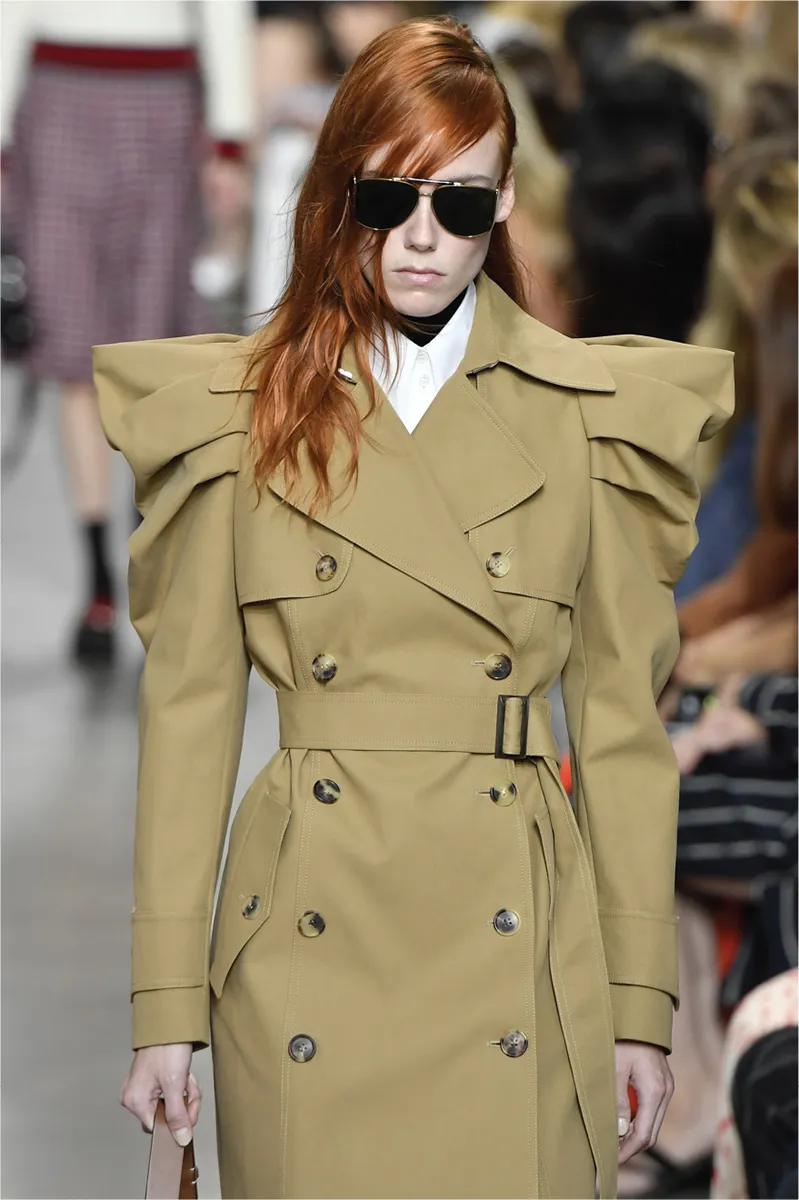 Model wears a Michael Kors double-breasted coat as part of the designerâs runway presentation for spring/summer 2020.