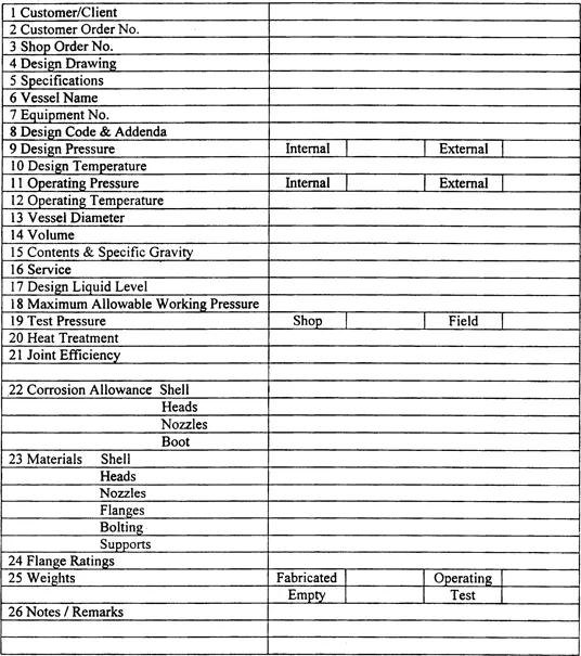 The basic information for designing pressure vessels, being a part of the process plant, should be formulated by the process engineering group and contain such criteria as shown in Figure 1.2. This is known as the design data sheet (DDS).