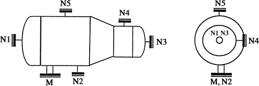 A vessel used for the containment of pressure (either internal or external) is a pressure vessel. Pressure vessels can be of any shape. However, the most complicated one, as envisaged in ASME Section VIII Div (1), is shown in Figure 1.1.