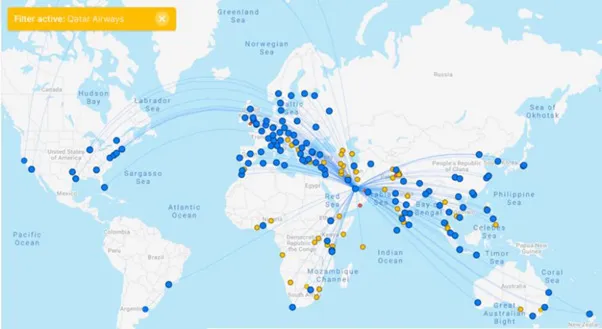 Figure 1: Network of Qatar Airways; Source: Flightconnections 2021.