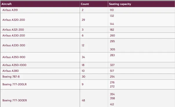 Figure 2: Fleet of Qatar Airways; Source: Qatar Airways 2021g.