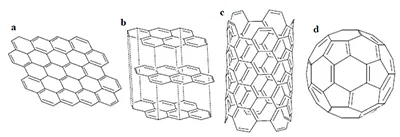 Each of the graphitic materials possesses different dimensionality (Fig 1). The two-dimensional graphene can be considered as the "mother" of all other dimensionalities, i.e . fullerenes (0-dimension), carbon nanotubes (1-dimension) and graphite (3-dimensions) [6].