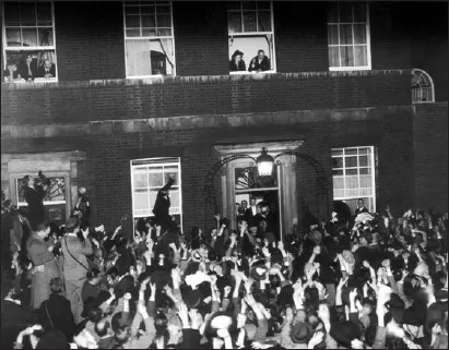 Neville and Anne Chamberlain look out an upstairs window at crowds assembled on Downing Street to celebrate the ill-fated Munich Agreement, September 1938. Sadly, the āpeace for our timeā declared by Chamberlain would prove short-lived.