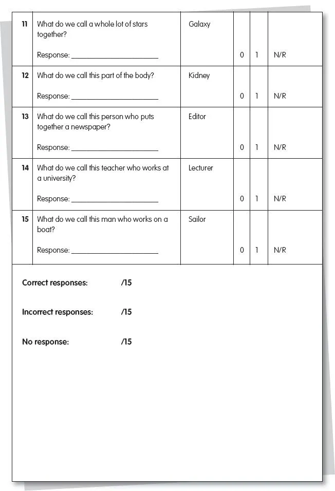 ‘I’m going to show you some pictures and I want you to look carefully at each one and tell me what it is. So give me the name for each picture.’