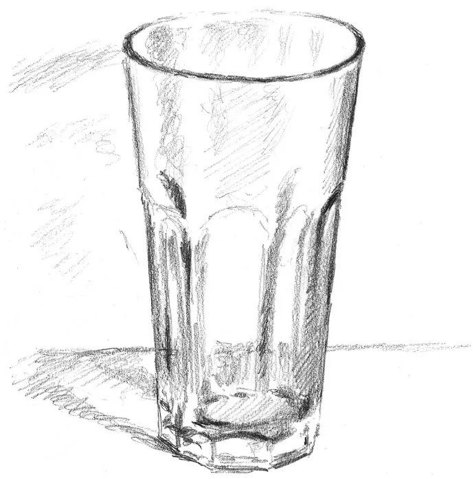 Now a return to a glass tumbler – but this one has faceted sides in the lower half, which produces a more testing shape to draw. Again, as with all of these objects, the main thing is to get the shape right and only then go ahead with the shading.