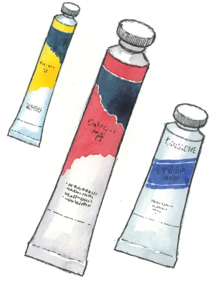 Gouache, also known as body colour, is a more substantial water-based paint that has greater covering power, making it useful when you want to obscure one colour with another. It can be used with traditional watercolour in various ways (see page 32).