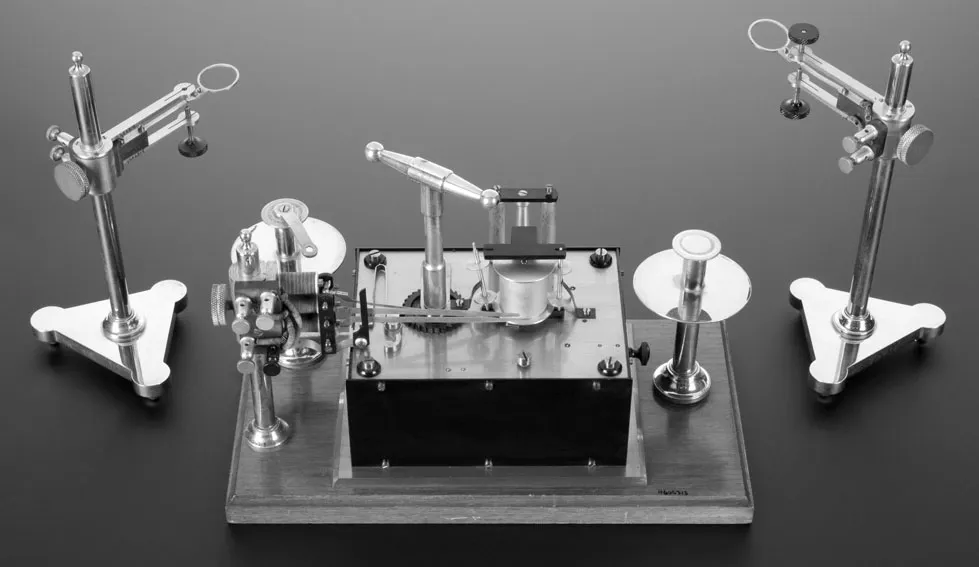 Helmholtz also contributed to neurology by measuring the speed of nerve conduction â he measured nerve impulses travelling in frog nerves at around 27 m (88 ft) per second â and to ophthalmology, inventing the ophthalmoscope that allowed doctors to examine the interior of the eye and proposing a new theory of colour vision. Du Bois-Reymond went on to investigate the electrophysiology of nerves and muscles and Ludwig invented the kymograph, which is a device that allows physiological data such as blood pressure to be recorded over time. BrĂźcke researched speech, the structure of skeletal muscle and plant physiology.