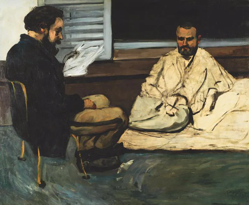 Paul Alexis Reading to Émile Zola, 1869–70. This portrait of the 30-year-old Zola shows him listening to his friend Alexis, a writer and art critic. Zola’s light-coloured costume and seated pose lend him an air of remoteness and wisdom.
