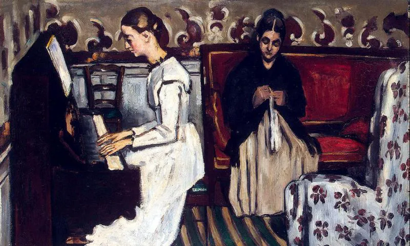 Girl at the Piano – Overture to Tannhauser, c.1868. Very few images of Cézanne’s childhood survive, but this picture, painted in his early, heavy style, shows his mother and sister Marie in the family home at Aix.