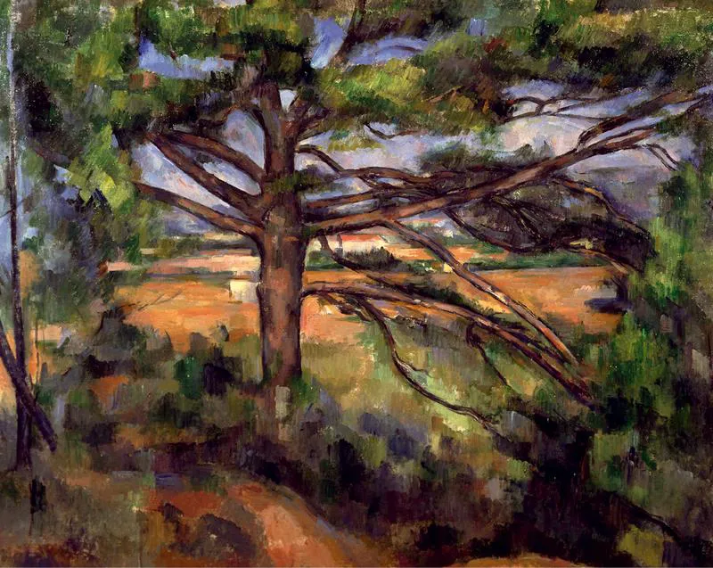 Large Pine and Red Earth, 1895–7. The countryside around Aix-en-Provence, with its streams, rocks and trees, was the perfect adventure ground for Cézanne and his friends. Later, his idyllic memories helped to inform his passion for the landscape.