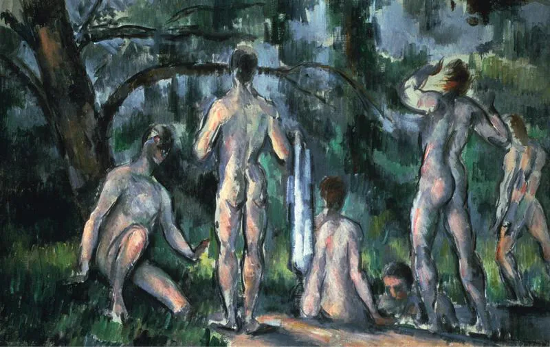Study of Bathers, 1892–4. Cézanne’s fascination with outdoor bathing had its origins in his boyhood swimming expeditions with friends. In his final years, he produced a set of monumental studies of bathers, along with smaller works on the same theme.