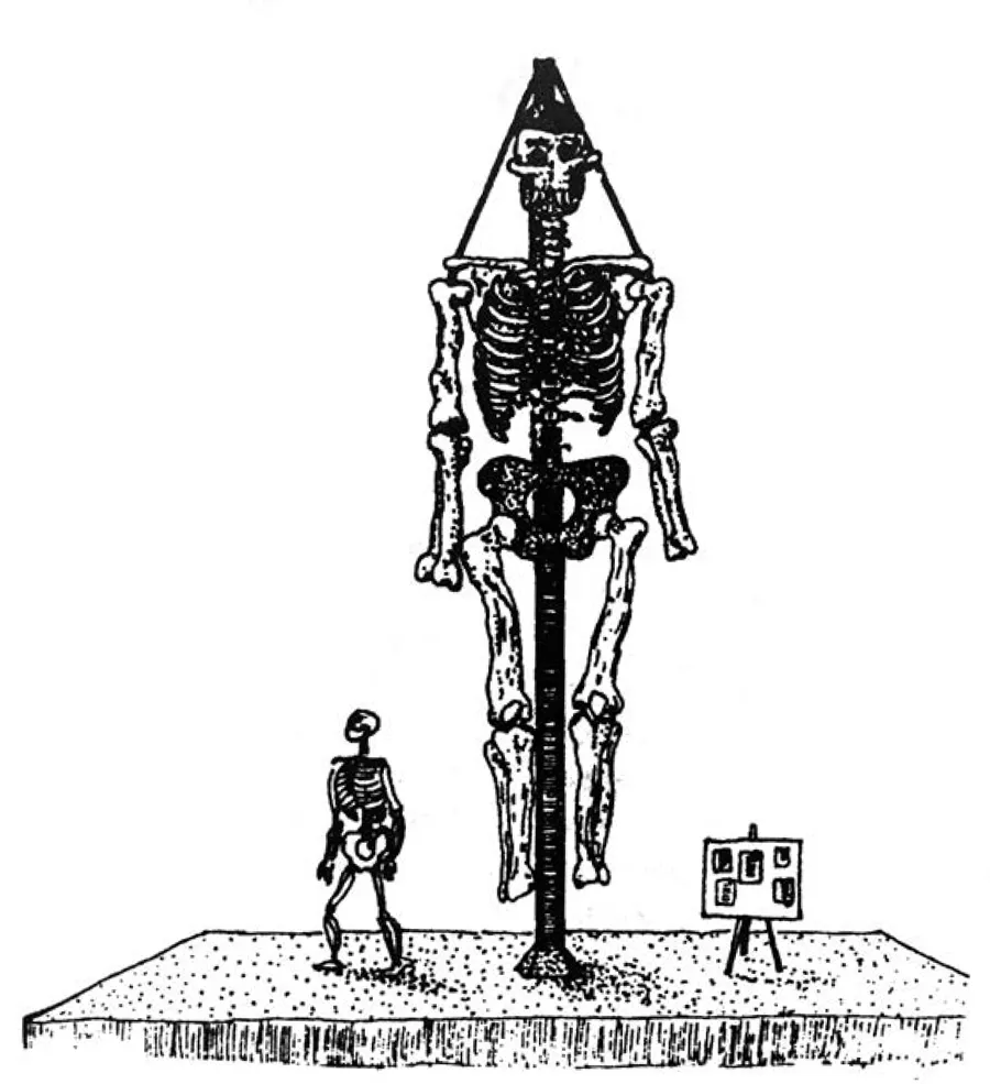 FIGURE 1.1. Sketch of Shumate’s “grand Monster Tennessean.” When exhibited in Nashville in December 1845, the mastodon remains were mounted upright beside an articulated human skeleton for scale. After James X. Corgan and Emmanuel Breitburg, Tennessee’s Prehistoric Vertebrates, Tennessee Division of Geology Bulletin 84 (Nashville: State of Tennessee Department of Environment and Conservation, 1996), fig. 1.