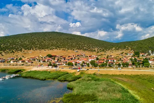 In the Greek Prespa region there are thirteen villages surrounding both Great and Lesser Prespa Lakes. For many years, the Greek Lake region was an under-populated, military sensitive area. The entire region remained little developed until the 1980s, when it gradually became promoted as a tourist destination, although numbers today remain very small. The villages are split into those surrounding Great Prespa – Psarades, Vrondero and Pili – and those around Lesser Prespa – Agios Achilleos, Agios Germanos, Laimos, Milionas, Plati, Kallithea, Lefkonas, Karies, Oxia and Mikrolimni. The largest village in Greek Prespa is Laimos, with around 250 permanent residents and together with nearby Agios Germanos making a larger semi-urban centre. It is also the administrative centre of the area. Agios Germanos, with its many well-preserved traditional houses and eleventh-century Byzantine church, is the most frequented by visitors. The village contains a Visitors Information Centre of the management body for the Prespa National Park with details of wildlife and walking trials, as well as a permanent exhibition of the region’s environment and culture.