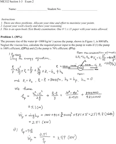 Figure 1.1 An exam sheet from a fluid dynamics course.