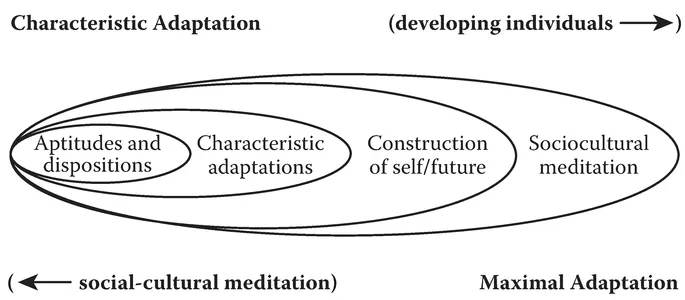 - how the person evolves as the result of specific ways of interacting with a particular task and social environments (process regularities); and