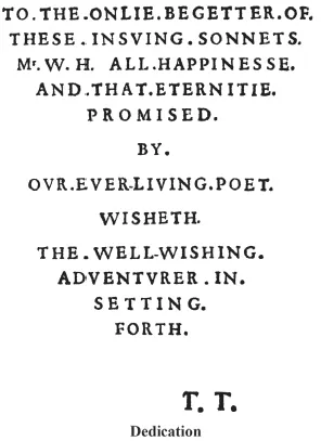 They are baffling enough for some to call the dedication in Q the greatest mystery in English literature. We hear words such as ‘BEGETTER’, ‘POET’, ‘ADVENTURER’, we see dots after every word or letter and take particular note of the two sets of initials ‘Mr. W. H.’ and ‘T. T.’