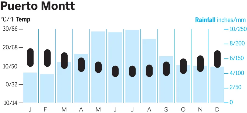 - Nov–Mar Navimag ferry high season: spectacular Patagonian sunsets and glaciers.