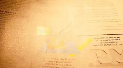 As I became aware of the various effects and qualities of natural vs. artificial light, my natural curiosity meant that I wanted to investigate further, and so I began to conduct informal experiments. One of the first experiments that I did, concerning the impact of glare, was to see if the shine on a page had any effect on my eyesight. When I looked at an area that had that obvious shine, I wanted to see if it was unclear because of the overlaying gloss, or if the shine was impacting my ability to focus. So, in order to investigate, I placed a strand of human hair (because it was fine, but 3-dimensional) near the area with the glare, and I focused on the hair.
