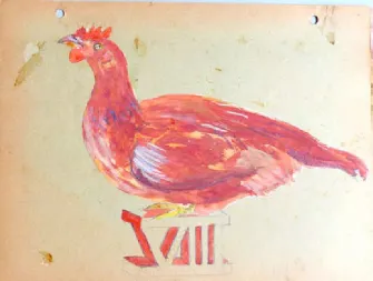 When I was growing up on the farm, we had many chickens. As a little boy I made friends with a few. I had a pet rooster, Leo Leto, who sat on a table while I painted his picture. I still have that painting. As a member of the 4H-club I won eleven prizes; eight were for first prize for my chickens in the county fair.
