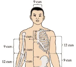Body Part | Area between two points on the body | Length in cun | |
