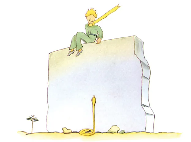 Un piloto se ve obligado a aterrizar de emergencia en el desierto del Sahara y de repente ve aparecer a un niño, vestido de una manera muy particular, que lo sorprende con sus preguntas y sus modales. Poco a poco el extraño niño le cuenta que viene de un lejano asteroide, en donde vive acompañado por una flor caprichosa y tres volcanes que deshollina cada mañana. Cansado de discutir con su flor, de la que está enamorado, aprovecha una migración de pájaros salvajes para escapar de la orgullosa rosa. Antes de llegar a la Tierra recorre seis planetas y así conoce a un rey que no tiene a quien gobernar, a un vanidoso a quien nadie admira, a un bebedor, a un hombre de negocios que se creía dueño de todas las estrellas del universo, a un farolero cuya consigna era prender y apagar un farol en un planeta que giraba una vez por minuto, y a un geógrafo que nunca había visto una montaña, un río o un océano. Ya en la Tierra, el principito se encuentra un jardín de rosas que lo hace sentir muy triste, pues hasta ese día creyó que su rosa era única en el universo. Casi al tiempo conoce al zorro que le suplica al niño que lo domestique. Conoce también un guardagujas, un vendedor y una serpiente venenosa que lo ayuda a regresar a su añorado asteroide.