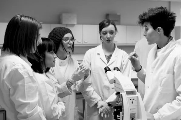 Figure 1.1 Informal learning and sharing of expertise â a Life Sciences student explains what is being viewed down the microscope (in this case, a histology slide of healthy and unhealthy liver tissue) © Chiara Ceolin
