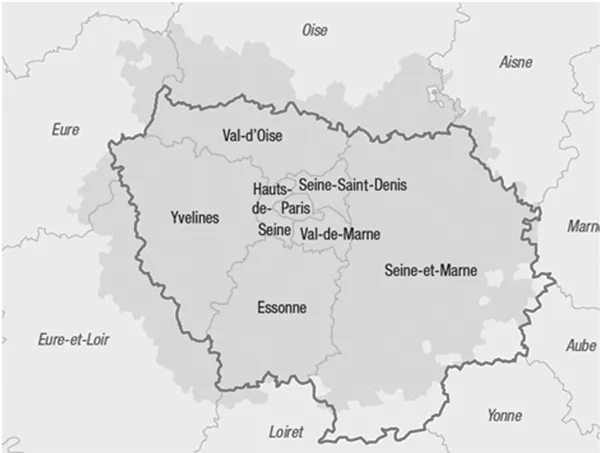 In this book, the choice is to focus almost exclusively on the Île-de-France region, thus treating it as equivalent to the Paris urban area. The reasons for this choice are, first, that there is a fairly good match between the territory of Île-de-France and the Paris urban area (see Map 1.1) but, above all, because Île-de-France is the scale used by the authorities – and, in particular, by the government – in applying its policies, and it corresponds to the scope of the decision-making and consultative structures not only of the political institutions but also of the economic community and civil society. In other words, it is the yardstick territory and makes sense for all the actors concerned with the smooth operation and development of the Paris metropolis.