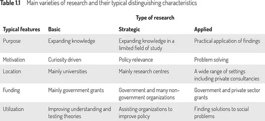 Three major categories of social research have traditionally been identified. These are: basic research, strategic research and applied research. While the differences among these can sometimes be blurred, the general thrust of each is usually evident in any particular research project. The characteristics of these three types will now be outlined.