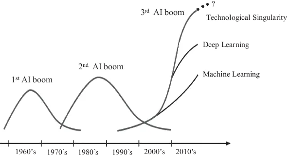 Since the word AI was introduced, there were three booms and two winter seasons in-between, and currently we are entering the third boom, as illustrated in Figure 1.1 [10, 11].