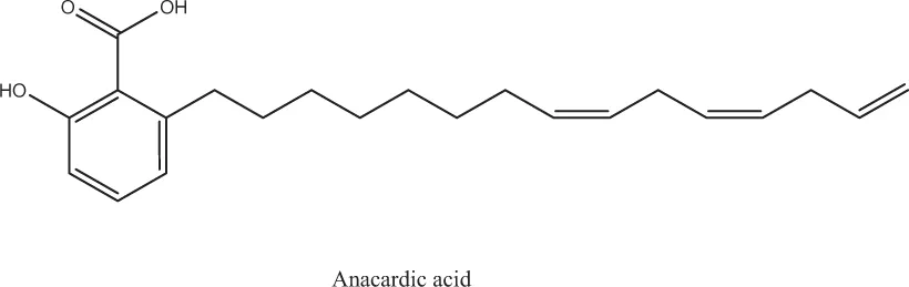 - Kubo, I., Muroi, H., Himejima, M., Yamagiwa, Y., Mera, H., Tokushima, K., Ohta, S. and Kamikawa, T., 1993. Structure-antibacterial activity relationships of anacardic acids. Journal of Agricultural and Food Chemistry, 41(6), pp. 1016–1019.