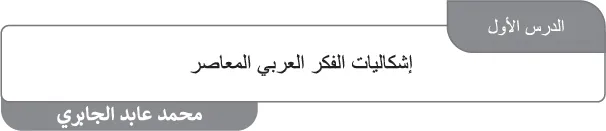"إشكاليات الفكر العربي المعاصر" هي جملة القضايا النظرية التي يناقشها المثقفون العرب في الوقت الحاضر، والتي تخص وضع العرب في علاقته بالماضي العربي وبالحاضر "الأوربي" الذي يفرض نفسه "حاضراً" للعالم أجمع. نقول: " الماضي العربي"، ونقصد حضوره في الواقع العربي المعاصر، الفكري منه والسياسي والاجتماعي والاقتصادي.
