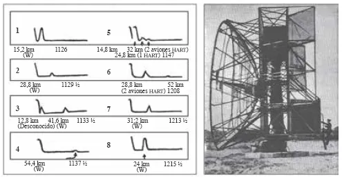 Sir Robert Watson-Wat fue el primero en presentar un proyecto práctico para determinar, por medio de ondas de radio, el lugar en que se halla en cualquier momento un aeroplano, y el 24 de julio de 1935 se realizaron las primeras pruebas con el «Wallace», llegándose a la conclusión de que hasta una distancia de 60 km podía seguirse el rumbo de un avión por medio de las ondas de radio que se reflejaban en él y que daban el eco que se observaba en la pantalla de un tubo de rayos catódicos (fig. 1.1). En septiembre del mismo año ya se habían montado varias estaciones de radar en la costa británica del canal, que fueron las primeras instalaciones del mundo. En 1940 estaban cubiertos todos los puertos y a finales de 1941 ya estaba cubierta toda Gran Bretaña.