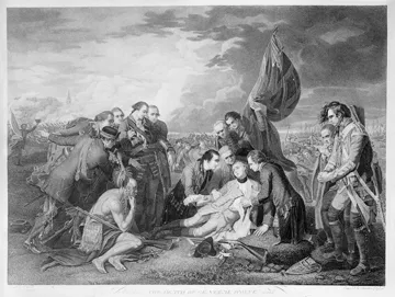 From its unveiling in London in the spring of 1771, âThe Death of Wolfeâ was a sensation. It earned for its creator an official appointment as history painter to the King, and became one of the most enduring images of the British Empire, reproduced on tea trays, wall hangings and drinking mugs. West himself completed six versions of the painting. Today it still appears in history textbooks as an accurate representation of the past. Yet as an historical document, it is largely a work of fiction. In reality, Wolfe died apart from the field of battle and only one of the men seen in the painting was actually present. Other officers who were present at the death refused to be included in the painting because they disliked General Wolfe so much.