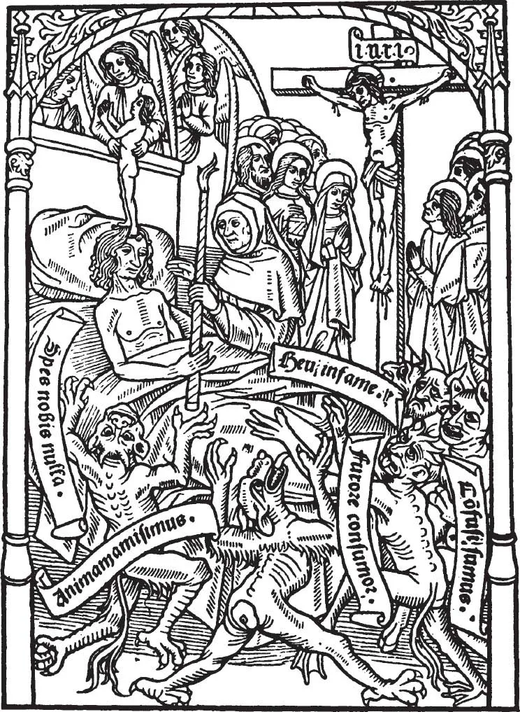 Page from The Art of Dying, which illustrates the fears of the medieval man